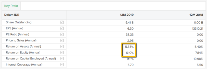 Namun dari segi ROE yang hanya berada di angka 6.10%, nampaknya tidak terlalu baik karena di bawah 10%. Angka ini pun turun dari tahun sebelumnya yaitu dari angka 7.84%. Penurunan ini tampaknya disebabkan oleh meningkatnya ekuitas karena adanya tambahan modal dari IPO.