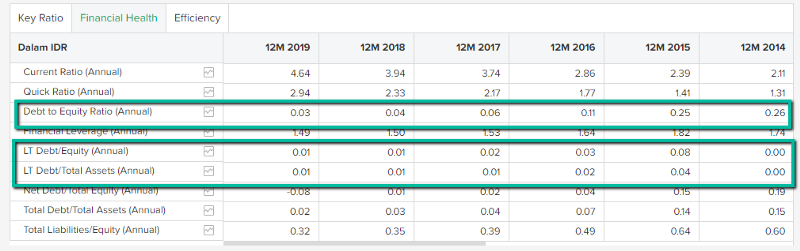 SMSM konsisten menjaga tingkat hutangnya pada level yang sangat rendah. Silakan simak screenshot berikut — almost 0 all the time.