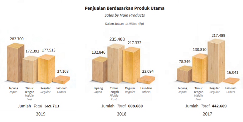 Tidak heran jika terjadi perubahan hasil penjualan dari yang lebih banyak dari pasar Timur Tengah di tahun 2018, menjadi lebih dominan di pasar Jepang di tahun 2019. Menurut keyakinan penulis, hal ini tentunya didasari atas pengetahuan management perusahaan yang baik akan prospek dari pasar Jepang itu sendiri.