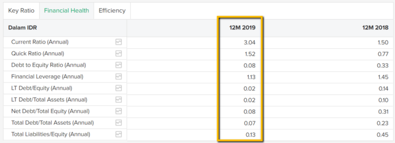 Jika dilihat angka Current Ratio yang berada di angka 3.04 dan Quick Ratio di angka 1.5 menunjukkan likuiditas yang dimiliki perusahaan cukup baik. Dalam jangka pendek, perusahaan akan mampu melunasi hutang-hutang jangka pendeknya. LT Debt juga tergolong sangat kecil yaitu hanya sebesar 0.02.