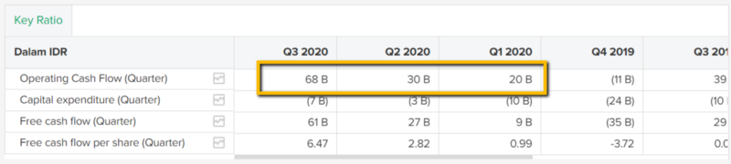 Pada akhir tahun 2019, IFII mencatatkan operating cashflow positif sebesar IDR 122 miliar. Di tahun 2020 juga IFII tidak pernah absen mencatatkan operating cashflow positif setiap quarter-nya, yaitu sebesar IDR 20 miliar, IDR 30 miliar, dan IDR 68 miliar; untuk masing-masing Q1, Q2, dan Q3 2020.