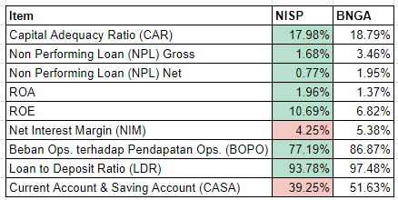 Untuk tahun 2020 sendiri, CAR NISP berada di angka 22.04% di mana angka ini lebih baik dari CAR BBNI (16.80%) dan BNGA (21.92%).